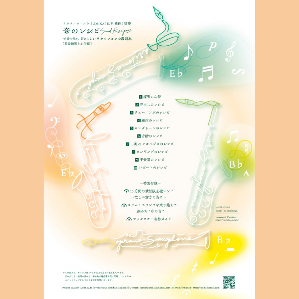 ※ 2026年中に、私のYoutubeチャンネル「Sumika Saxophone」にて、教本の解説動画を投稿する予定です。テキストでは表せない表現など、実際に音を聴いて体感していただくために、ぜひこちらもご覧下さい。